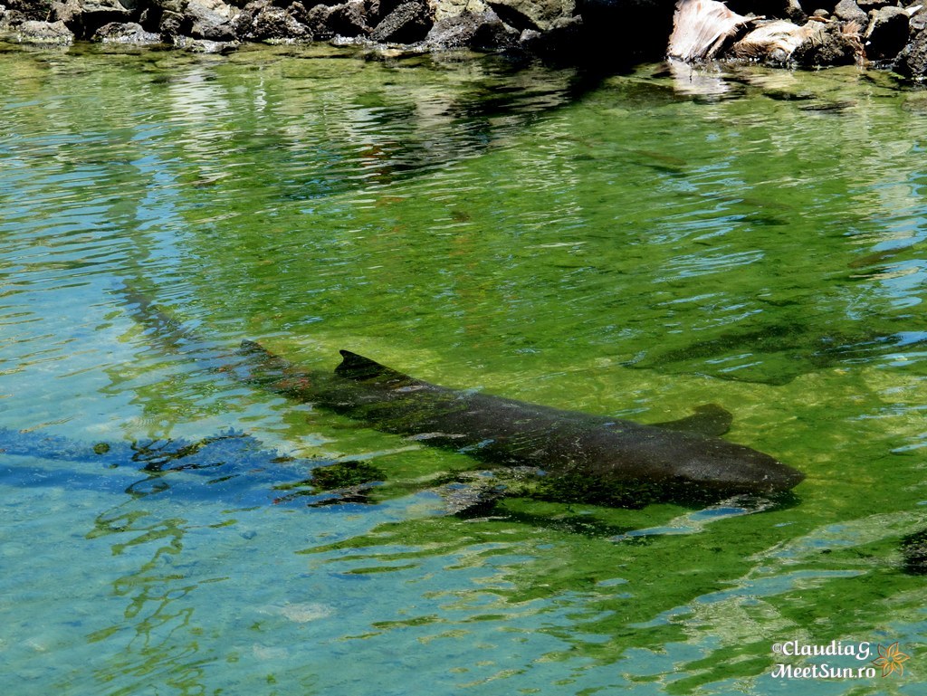 Ajungem la delfini. Bazinele sunt de fapt o amenajare pe o platformă în mijlocul mării, lucru care-mi place mult în ideea că e totuși captivitate, dar măcar e una familiară inteligentelor creaturi că altfel nu le pot numi. Până acum n-am mai fost la un delfinariu astfel că să-i văd atât de aproape și să-i ating a fost de departe o experiență care m-a surprins cu totul.