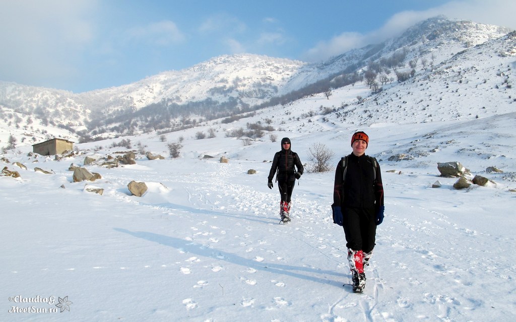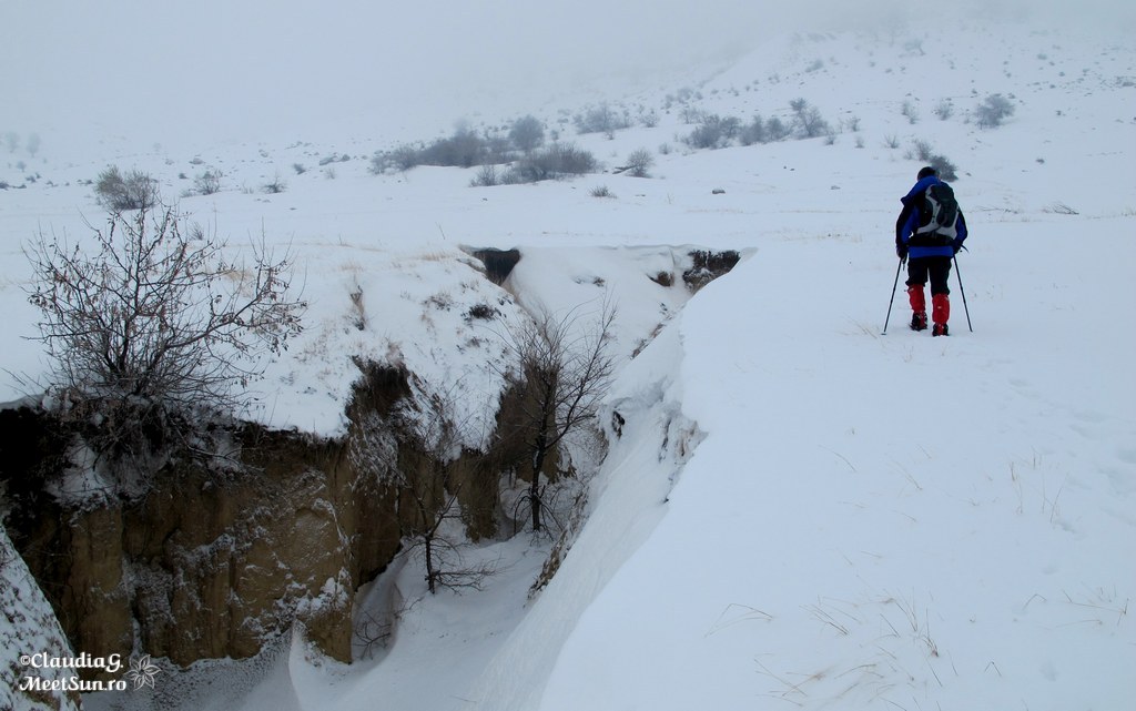 Șerpuind printre șanțurile formate cel mai probabil de viituri, lătrați de câinii de la stână, ocupați cu rezolvatul anumitor nevoi (deloc simplu în lipsa copacilor), cu ochii după iepuri și sporovăind una-alta am ajuns la primul izvor. Încă se distingea locul, iar apa bună de băut – pentru cine s-a omenit cu apă în locul vișinatei luată pe post de încălzitor alături de cei cinci litri de ceai din termosuri – s-a băut și ceaiul, nu vă faceți griji, a prins bine la finalul turei.