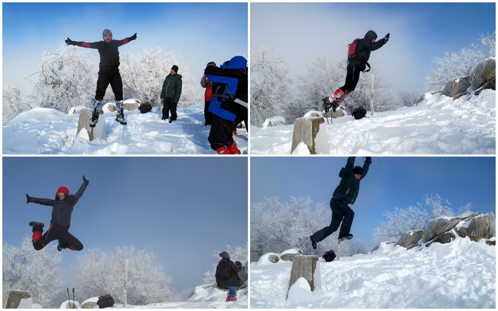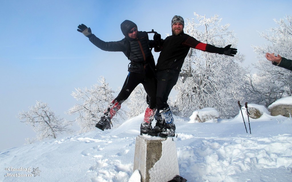 Drumul spre vârf ne rezerva parcă același nor îngândurat rezemat pe coroanele arborilor rari, pitici și strâmbi, o livadă de stejari, tei și alții (silvostepă pe numele ei) îmbrăcată în hainele țesute cu fir de chiciură pe fiecare ramură în parte. Ai zice că nu se pot întâmpla prea multe în Măcin când deodată…