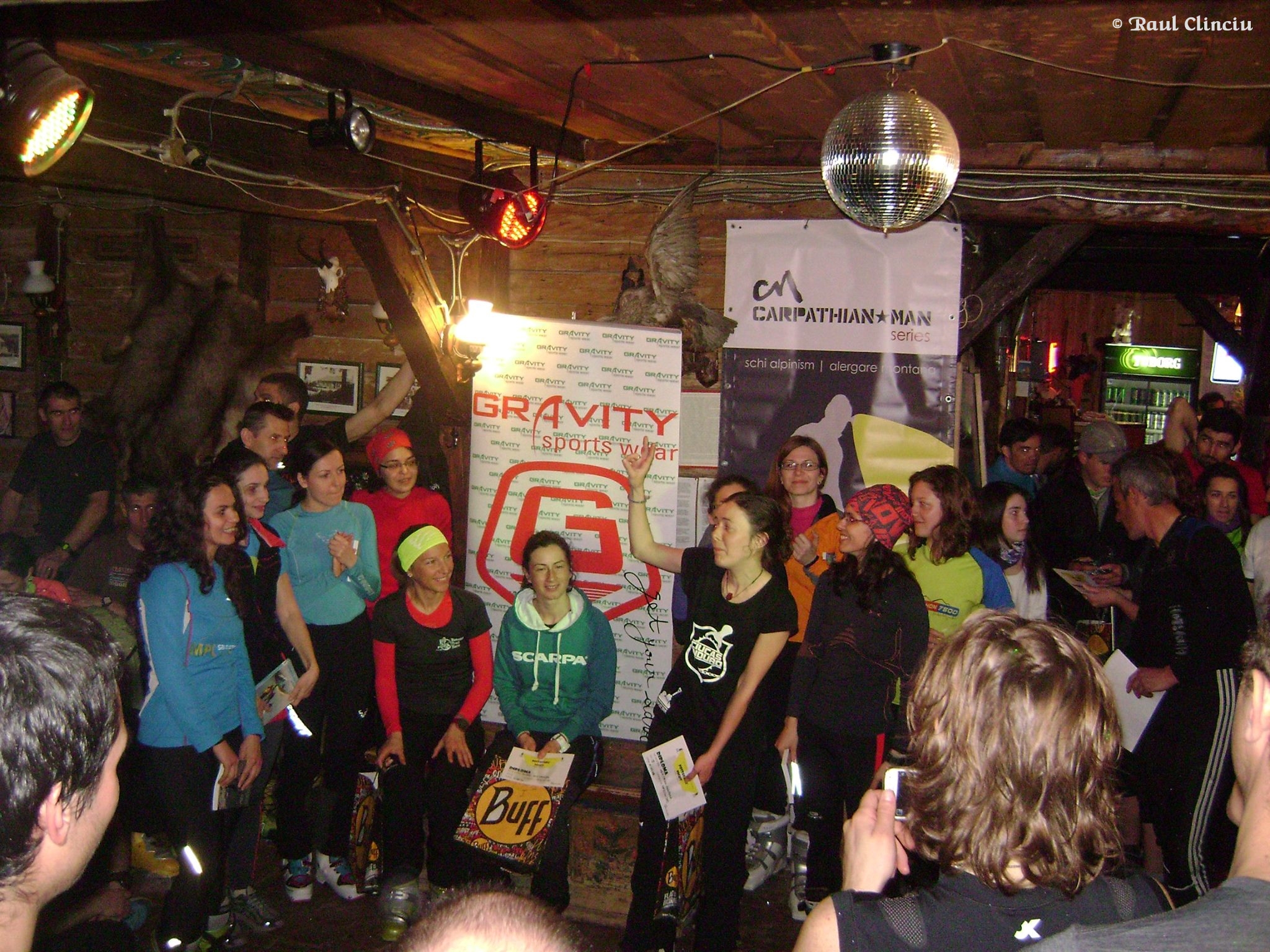 La cabană vânzoleală mare, dar e o atmosferă care îmi lipsea pe undeva. Oameni vechi și noi, revederi, saluturi, schimb impresii, timpul trece cu ceaiuri și paste oferite de organizatori, voluntarii încep dansul, se dansează, orele înaintează în noapte, dansez și eu – în clăpari nu oricum, deja se pleacă, unii sunt nemulțumiți căci ceremonia întârzie, cred că e Revelionul Schiorilor îi spun lui Mike și nu am dreptate căci trece și miezul nopții și tot nu începe. Văzusem clasamentele afișate, știam ce și cum, dar tot voiam să fiu acolo, să particip până la capăt.